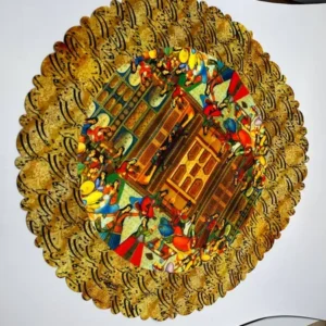 This product is a decorative circular tablecloth that is considered a complete work of art, conveying a deep and authentic sense of Traditional Persian culture.